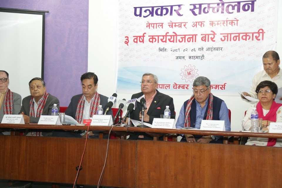 रणनीतिक सुधार योजना, राजश्वमा नीतिगत सुधार, वित्तीय व्यवस्थापन र कृषिको उत्पादन वृद्धि एवं आत्मनिर्भर अर्थतन्त्रको निर्माणका लागि चेम्बरले ४९ बुँदाको कार्यक्रम कार्ययोजना तय गरेको हो । चेम्बरद्धारा जारी विज्ञप्तिमा भनिएको छ, ‘विश्व व्यापार संगठनको सदस्य बनेयता नेपालले निरन्तर व्यापार घाटा बेहोरिरहेको छ । हाल आयातको हिस्सा ९० र निर्यातको हिस्सा १० प्रतिशतको अनुपातमा छ । यसलाई घटाउन निर्यात योग्य बस्तुहरुको पहिचान एवं प्रर्वद्धन गरी निर्यातको वतावरण बनाईने । बार्षिक १० खर्ब रुपैयाँको निर्यात क्षेमता पु¥याउने गरी ठोस निर्यात प्रर्वद्धन रणनीतिक योजना तर्जुमाका लागि पहल गरिनेछ, ।’