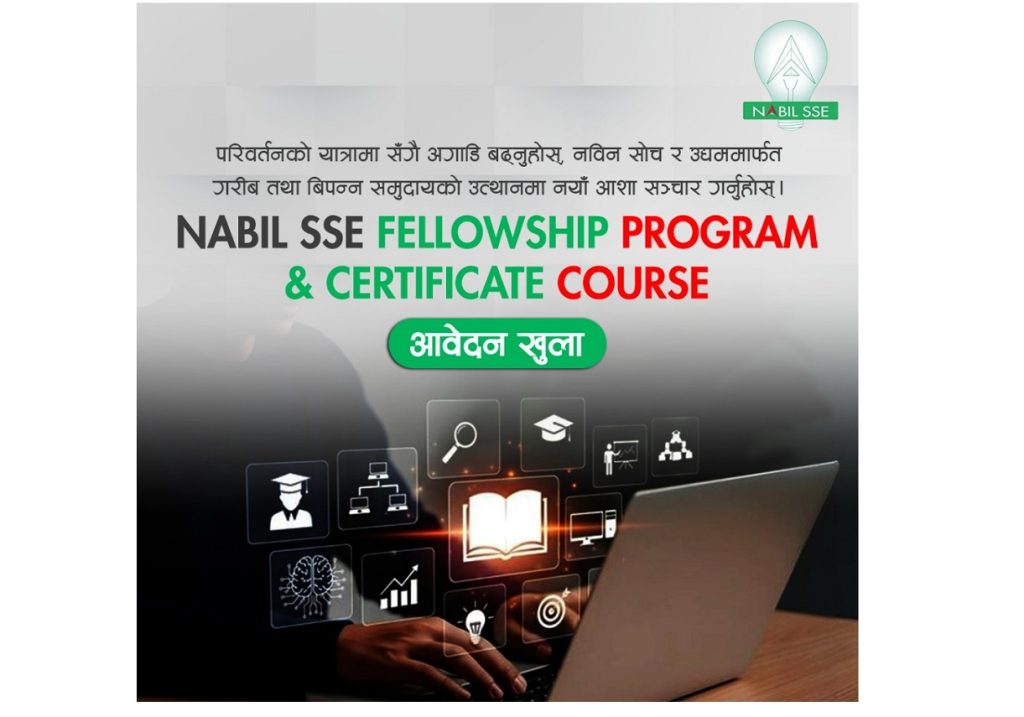 नबिल बैंकले समाजिक उत्तरदायित्व कार्यक्रम अन्तर्गत छैटौं ‘नबिल स्कूल अफ सोसल इन्टरप्रेनरसिप’ (एनएसएस) फेलोसिप सुरु गरेको छ। यस कार्यक्रमको उद्देश्य गरिबी निवारण र समावेशी दिगो उद्यम प्रवर्द्धन गर्नु हो। यसअघि ५ वटा फेलोसिपमा ७६ उद्यमीले आवश्यक वित्तीय र प्राविधिक सहयोग पाएका छन् भने ६२ वटा नयाँ उद्यम स्थापना भएका छन्, जसले १,१७२ प्रत्यक्ष र १३,२९५ अप्रत्यक्ष रोजगारी सिर्जना गरेका छन्।
